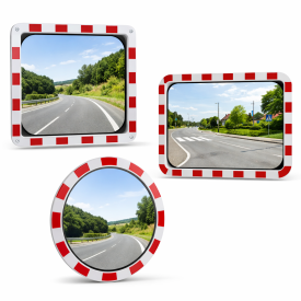 Oglinda rutiera model TR-80x100, 800x1000 mm, dreptunghiulara, bordura rosu-alb, de exterior