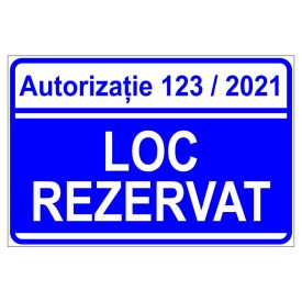 Placuta indicatoare parcare, loc rezervat, autorizatia nr., 200x300 mm, PVC, 1 mm
