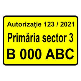 Placuta indicatoare parcare, autorizatia nr., primaria, numar auto, 200x300 mm, aluminiu compozit, 2 mm