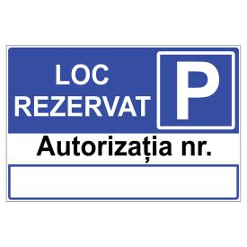 Placuta indicatoare parcare, loc rezervat, autorizatia nr., 300x400 mm, PVC, 3 mm
