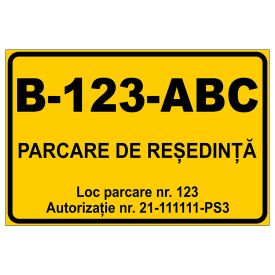 Placuta indicatoare parcare, parcare de resedinta, numar auto, 200x300 mm, PVC, 2 mm