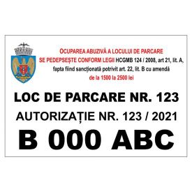 Placuta indicatoare parcare, loc de parcare nr., autorizatia nr., numar auto, 200x300 mm, autocolant vinyl, 0.07 mm