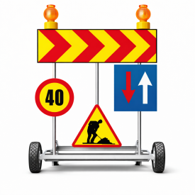 Bariera lucrari cu indicatoare drum in lucru si ocolire stanga, 1500x1000 mm, 12.5 kg