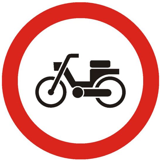 Accesul interzis ciclomotoarelor, C6, indicator de interzicere, Protrafic, 600 mm, folie reflectorizanta clasa 1, otel vopsit, indicator de interzicere sau restrictie se amplaseaza la intrarea pe drumurile publice pe care accesul mopedelor este interzis.