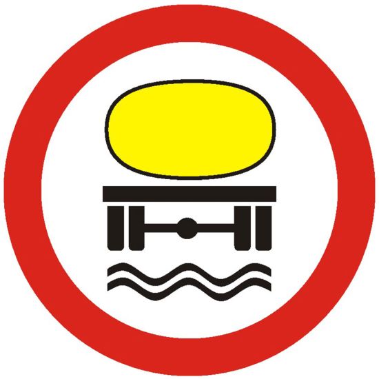 Accesul interzis vehiculelor care transporta substante de natura sa polueze apele, C44, indicator de interzicere, Protrafic, 600 mm, folie reflectorizanta clasa 1, otel vopsit. La intalnirea acestui indicator accesul vehiculelor care transporta substante de natura sa polueze apele este interzis.