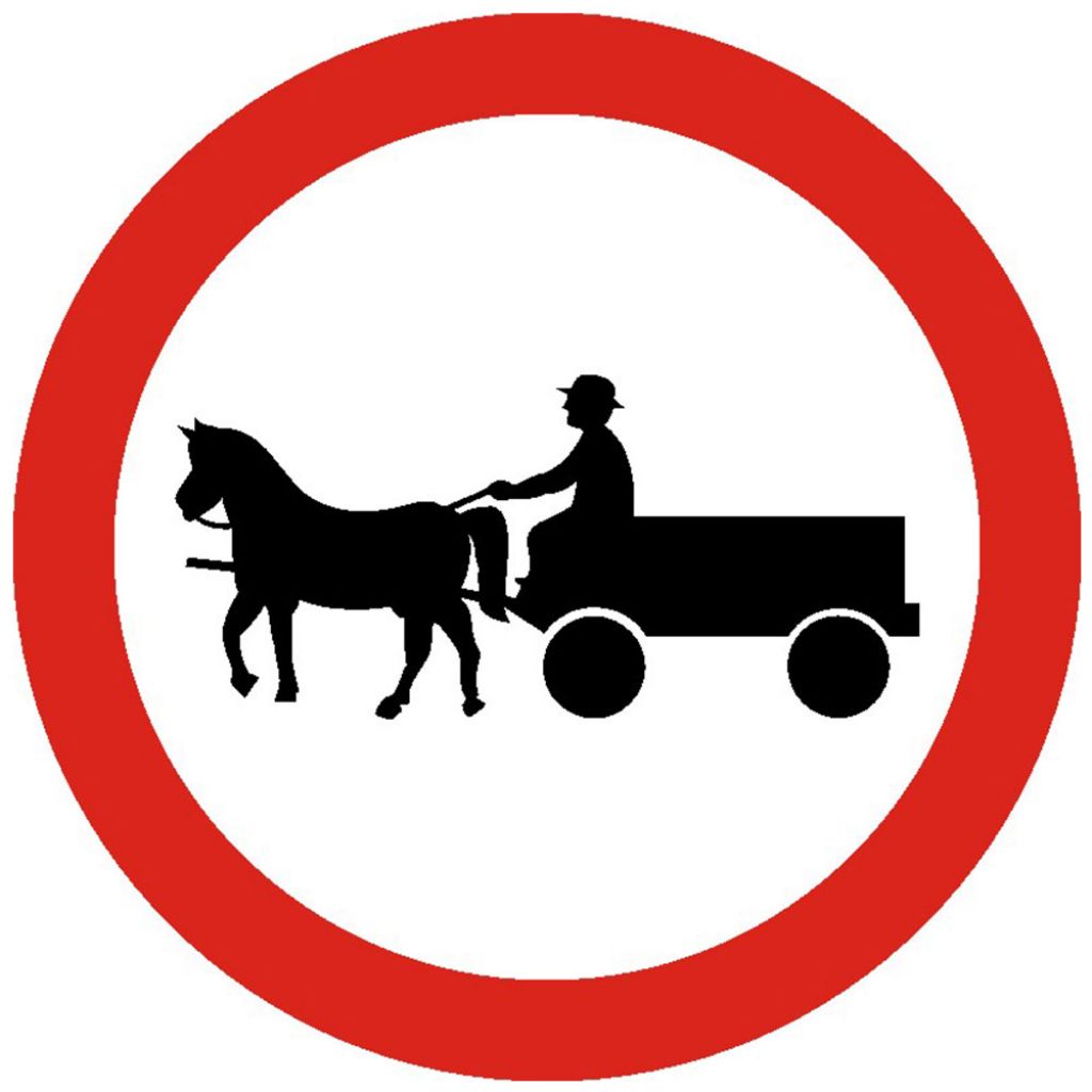 Accesul interzis vehiculelor cu tractiune animala, C11, indicator de interzicere, Protrafic, 600 mm, folie reflectorizanta clasa 1, otel vopsit, indicator de interzicere sau restrictie se monteaza la intrarea pe drumurile publice pe care accesul vehiculelor cu tractiune animala este interzis.