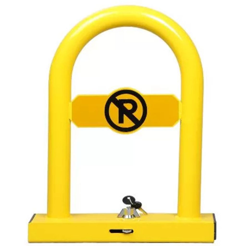Blocator tip arcadă pentru loc de parcare, cu lacăt, construcție din oțel și plastic