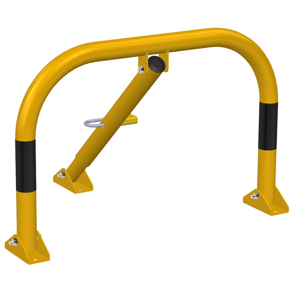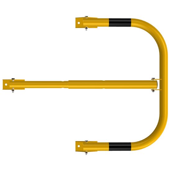 Blocator pentru parcare, tip arc, Poarta Midi, model BPP-02, Urbas, 600x400 mm, piston, galben, lacat, dibluri, holsuruburi este un sistem folosit pentru blocarea accesului pe locurilor de parcare.