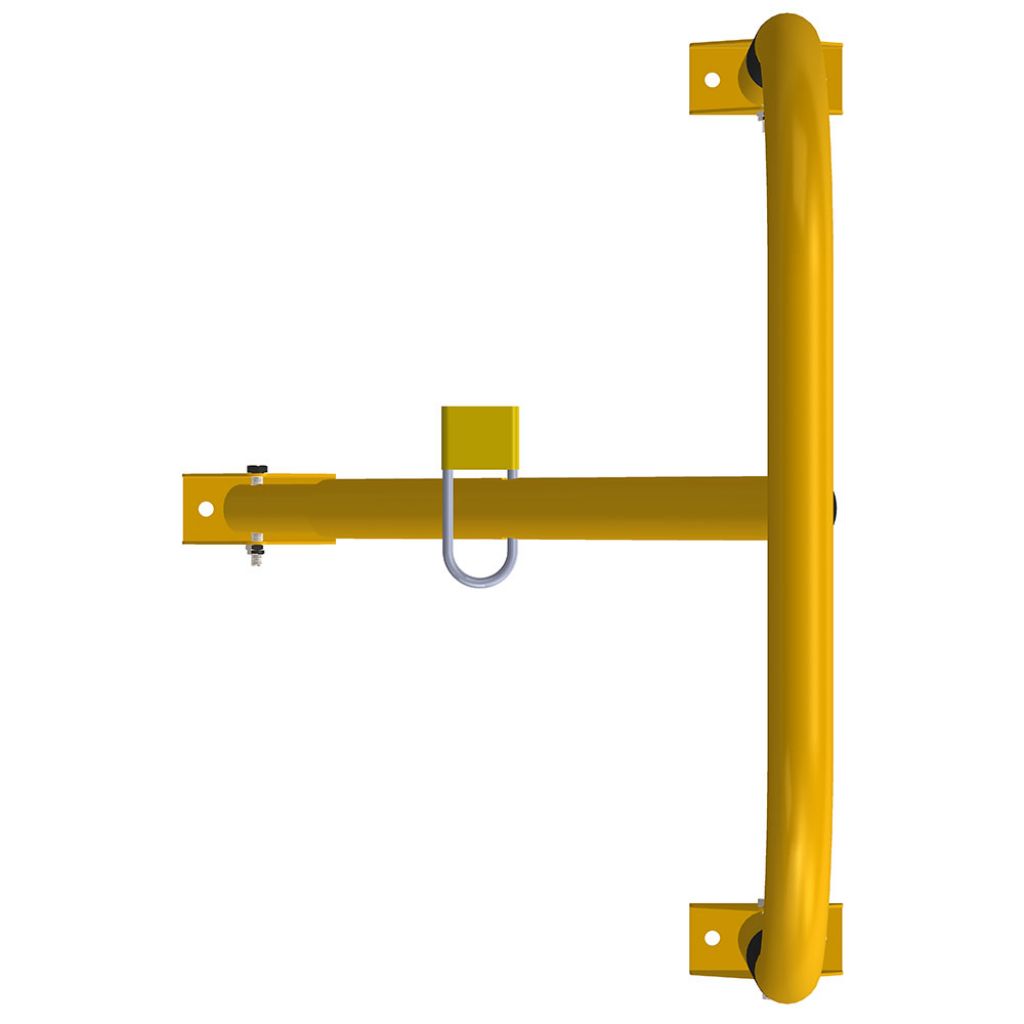 Blocator pentru parcare, tip arc, Poarta Maxi, model BPP-03, Urbas, 800x400 mm, piston, galben, lacat, dibluri, holsuruburi