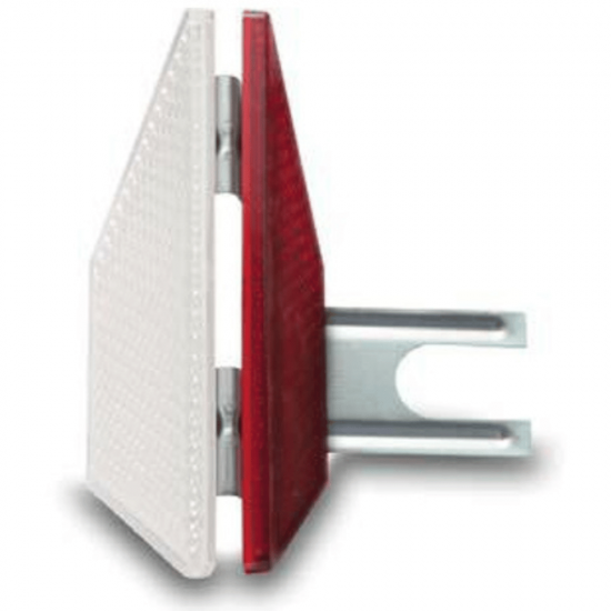 Placuta reflectorizanta de tip L cu catadioptri pe 2 fete rosu si alb pentru parapeti din beton cu montaj la partea de sus