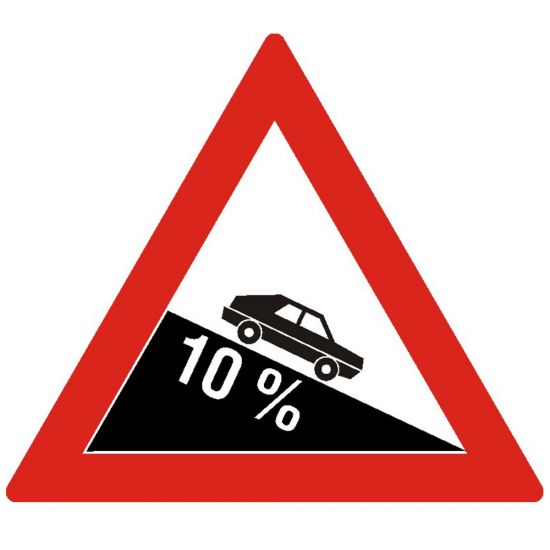 Se amplasează la 100-200 m de începutul sectorului de drum, când pantă depășește 7%. Conducătorul auto nu este obligat să reducă viteză, dar nu are voie să staționeze pe toată lungimea pantei. Dacă, în vârful pantei, vizibilitatea este redusă sub 50 m, toate manevrele sunt interzise. Dacă drumul nu este suficient de laț pentru a permite trecerea a două vehicule unul pe lângă celălalt, are prioritate cel care urcă față de cel care coboară.