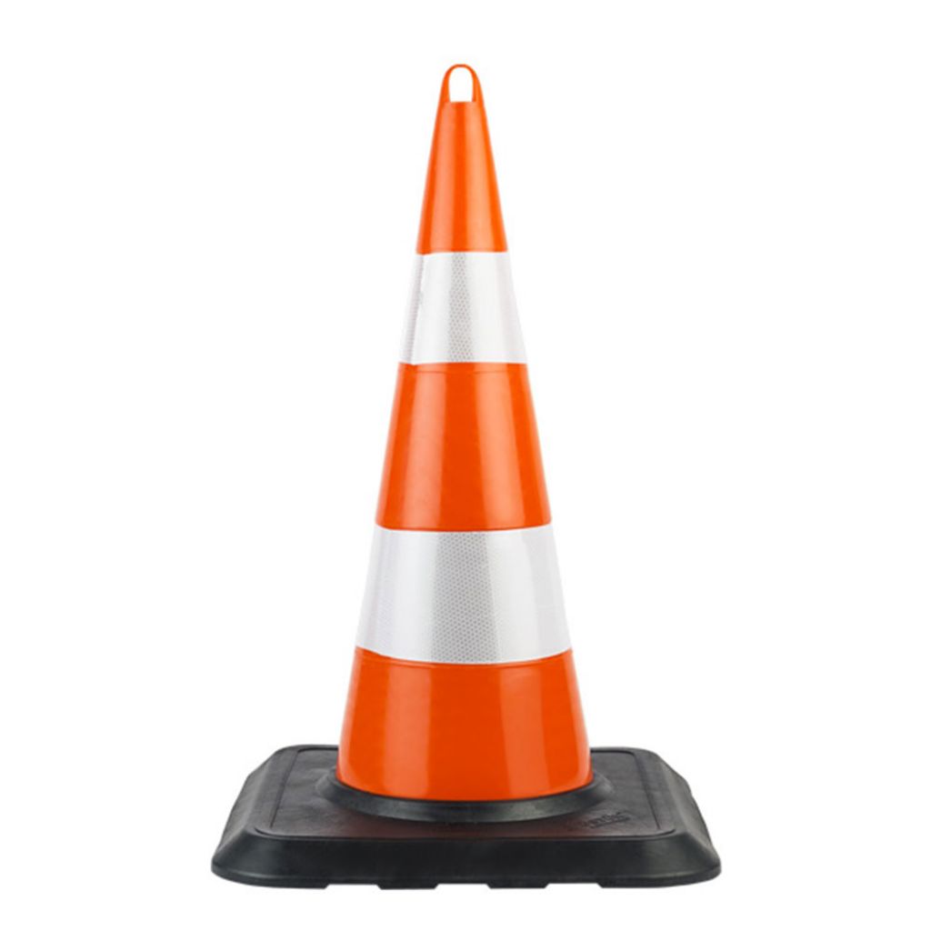 Con rutier portocaliu din PVC cu 2 folii refelctorizante si inaltimea de 900 mm folosit pentru delimitarea zonelor unde se desfasoara lucrari pe carosabil, unde accesul este interzis, in parcari sau santiere. Acest con este flexibil si rezistent la intemperii.