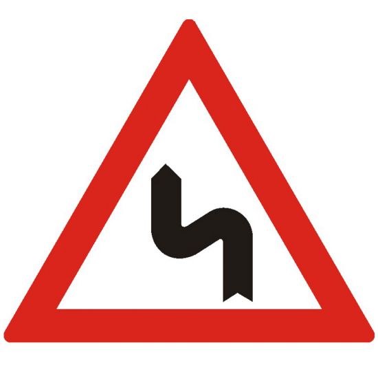 Indicator de avertizare curba dubla sau o succesiune de mai mult de doua curbe, prima la stanga, A3, indicator de avertizare, Protrafic, 700 mm, folie reflectorizanta clasa 1, otel vopsit se instalează atunci când urmează o succesiune de curbe, dacă distanță dintre acestea e mai mică de 250 m. Se amplasează la 100-200 m înaintea primei curbe. Aceste indicatoare pot fi însoțite și de panouri adiționale, pe care este specificată distanță până la terminarea sectorului de drum periculos, dacă lungimea acestuia depășește 1000 m. Conducatorul trebuie să circule cu viteză redusă în curbe, iar dacă vizibilitatea este redusă, toate manevrele (depășirea, oprirea, staționarea, mersul înapoi, întoarcerea) sunt interzise.
