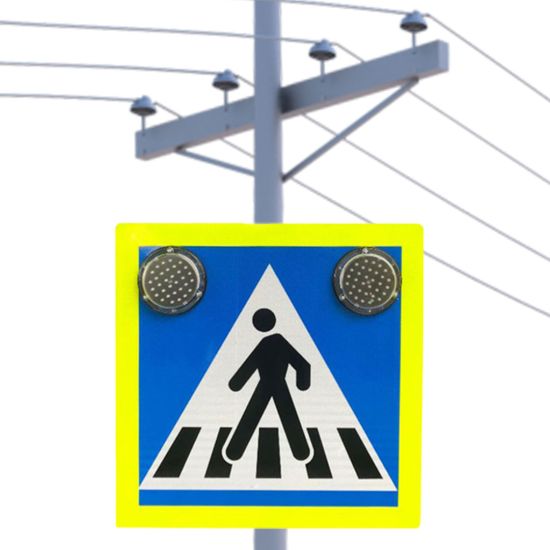 Indicator rutier Trecere de pietoni G1 echipat cu lampi cu LED-uri alimentate de la reteaua electrica, acumulator 9 Ah