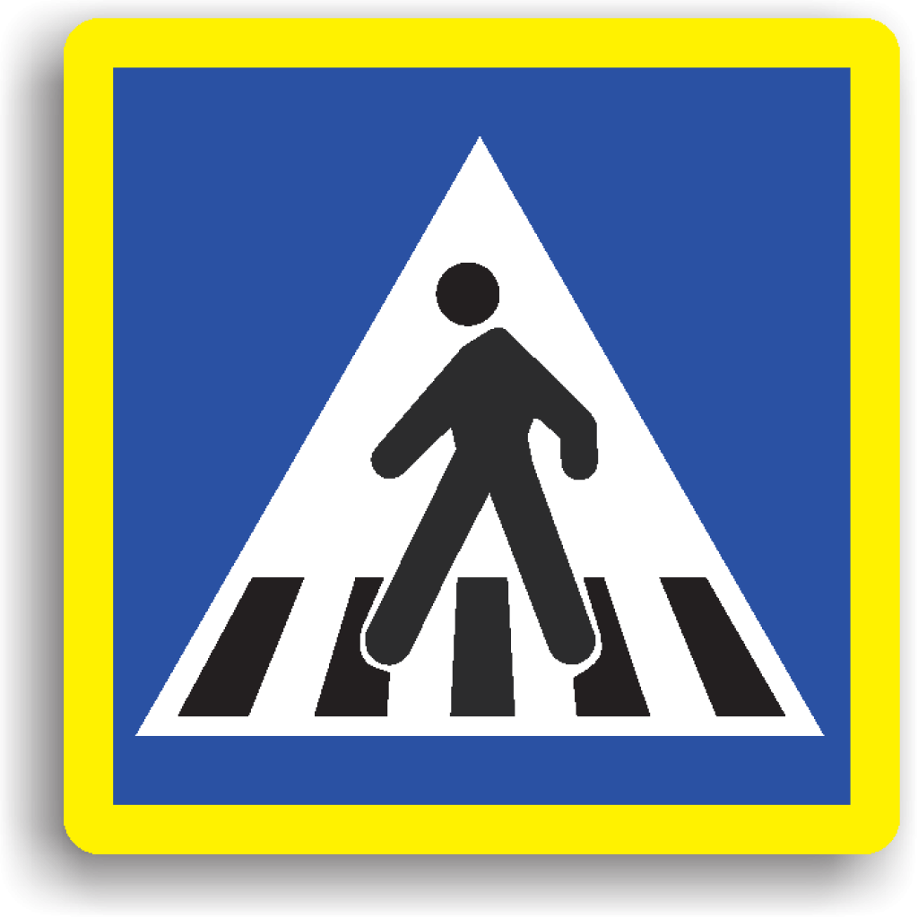 Indicator de informare G2 trecere pentru pietoni 850x850 mm folie reflectorizanta clasa 1 otel vopsit se instalează în apropierea unei treceri pentru pietoni. De obicei, este precedat și de indicatorul rutier "Presemnalizare trecere pentru pietoni".