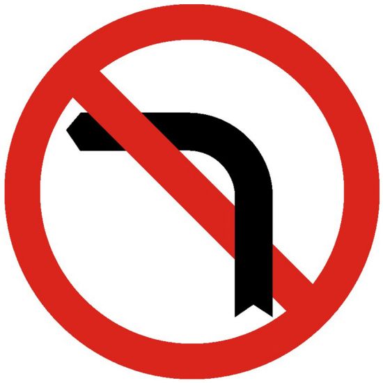 Interzis a vira la stanga, C22, indicator de interzicere, Protrafic, 600 mm, folie reflectorizanta clasa 1, otel vopsit, indicator de interzicere sau restrictie se afla instalat inaintea intersectiei in care se interzice virajul la stanga, deoarece pe drumul respectiv circulatia se desfasoara intr-un singur sens sau intrucat executarea virajului ar pune in pericol ceilalti participanti la trafic. Zona de actiune a indicatorului se termina dupa prima intersectie.