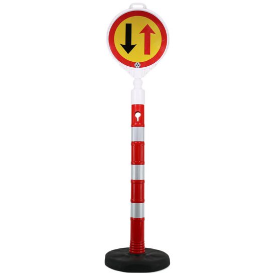 Set stalp 1200 mm cu baza grea si indicator pentru drum ingustat pe partea stanga