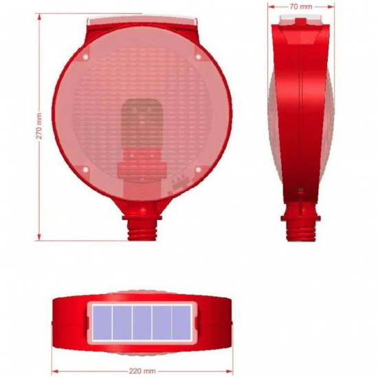 Lampa solara rosie pentru semnalizare lucrari cu lumina intermitenta si suport rotativ