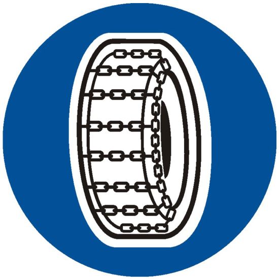 Lanturi pentru zapada, D16, indicator de obligare, Protrafic, 600 mm, folie reflectorizanta clasa 1, otel vopsit, indicator de obligare se amplaseaza in zonele in care, pe timp de iarna, cand partea carosabila este acoperita de zapada, circulatia autovehiculelor este permisa numai daca cel putin doua roti sunt echipate cu lanturi pentru zapada.