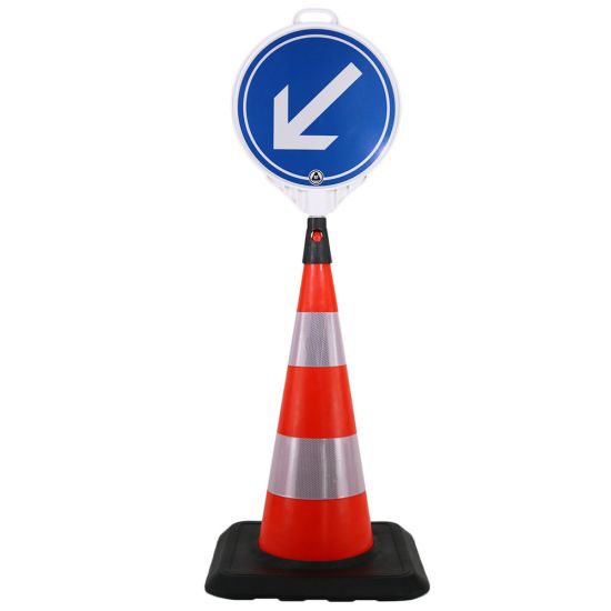 Pachet format din un con rutier cu inaltime de 750 mm si un indicator din plastic pentru ocolire pe partea stanga.