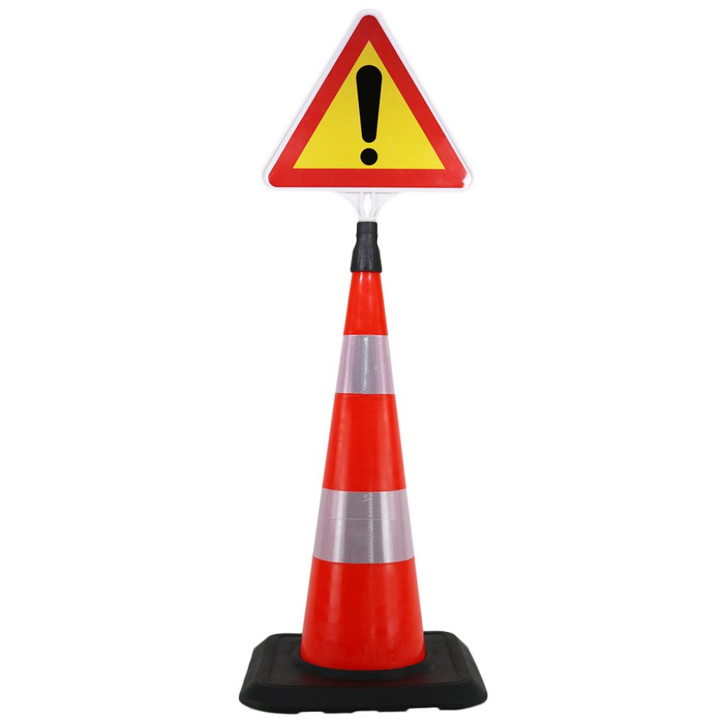 Pachet format din un con rutier cu inaltime de 900 mm si un indicator din plastic pentru atentie.