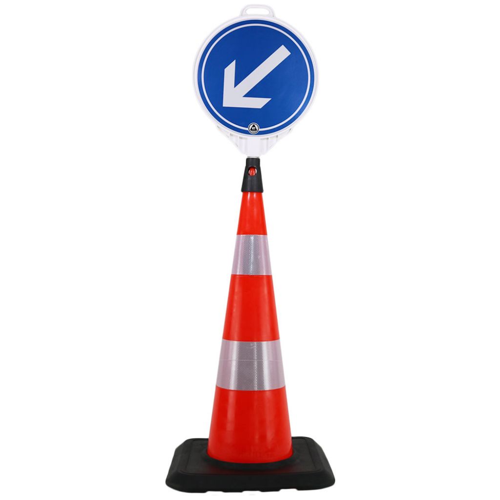 Pachet format din un con rutier cu inaltime de 900 mm si un indicator din plastic pentru ocolire pe partea stanga.