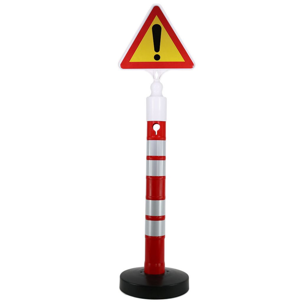 Pachet format din un stalp cu inaltimea de 1200 mm, o baza cu greutatea de 12 kg si un indicator din plastic pentru atentie.