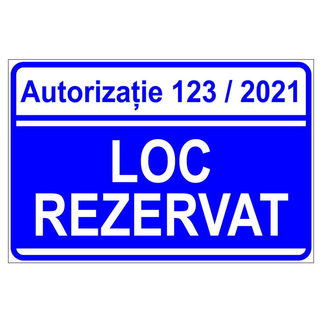 Placuta indicatoare parcare, autorizatia numar, loc rezervat, 200x300 mm, PVC, 1 mm