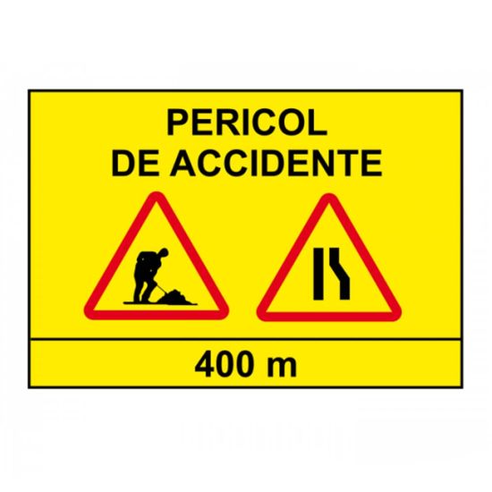 Presemnalizează un sector cu circulație alternantă, aflat la 400 metri de locul unde este amplasat indicatorul rutier. Deasemenea, indicatorul avertizează că drumul se îngustează; pe partea carosabilă pot apărea persoane care lucrează la sectorul de drum respectiv și drumul prezintă pericol de accidente.