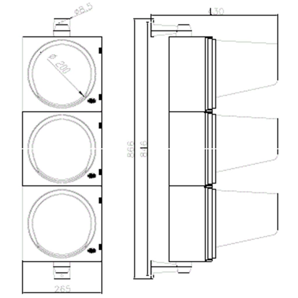 Diametrul suprafeţei luminoase semafor S2-TL: Ø200 mm.