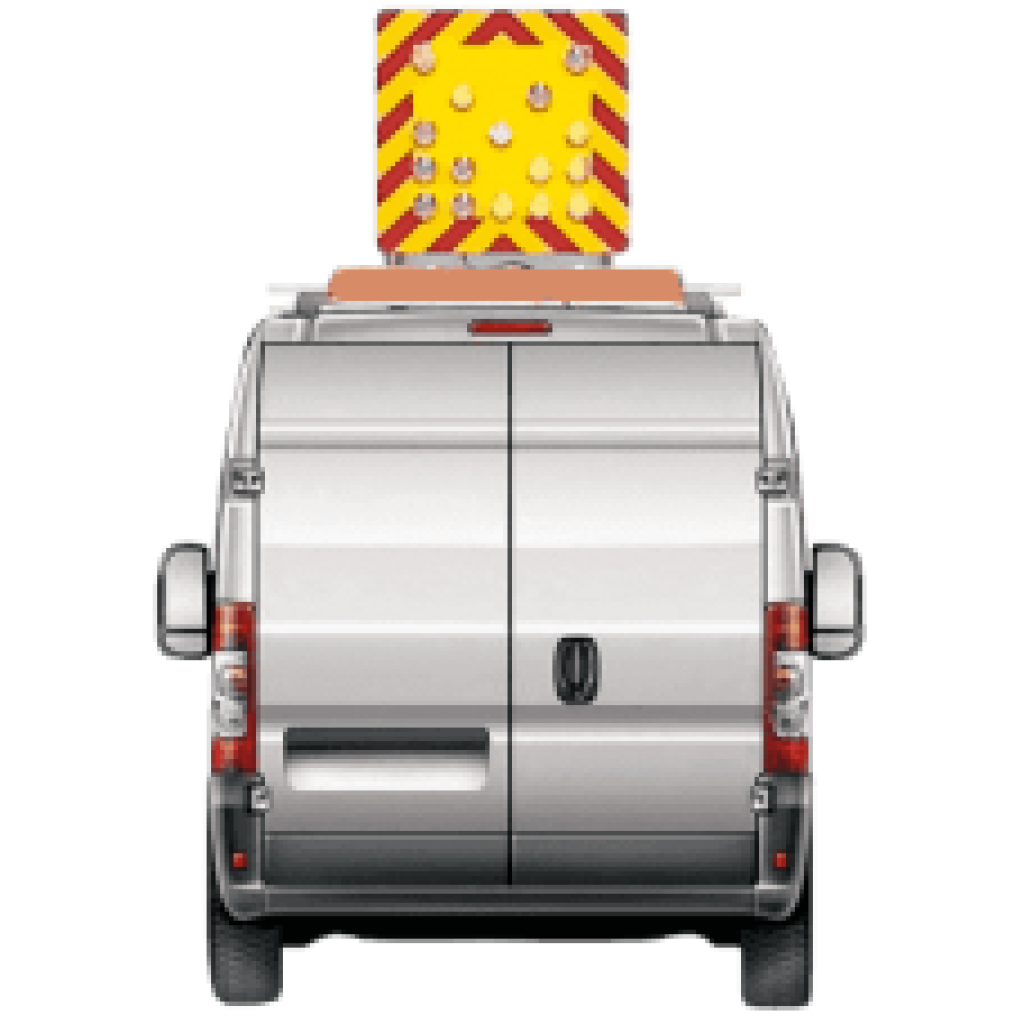 Semnalizare auto rabatabilă pentru o mai bună vizibilitate a autovehiculelor ce desfășoară lucrări pe carosabil.