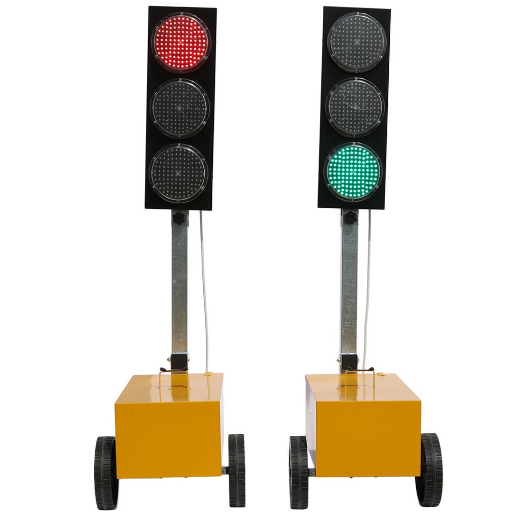 Set de 2 semafoare mobile pentru zone cu lucrări, cu lumini roșu-galben-verde