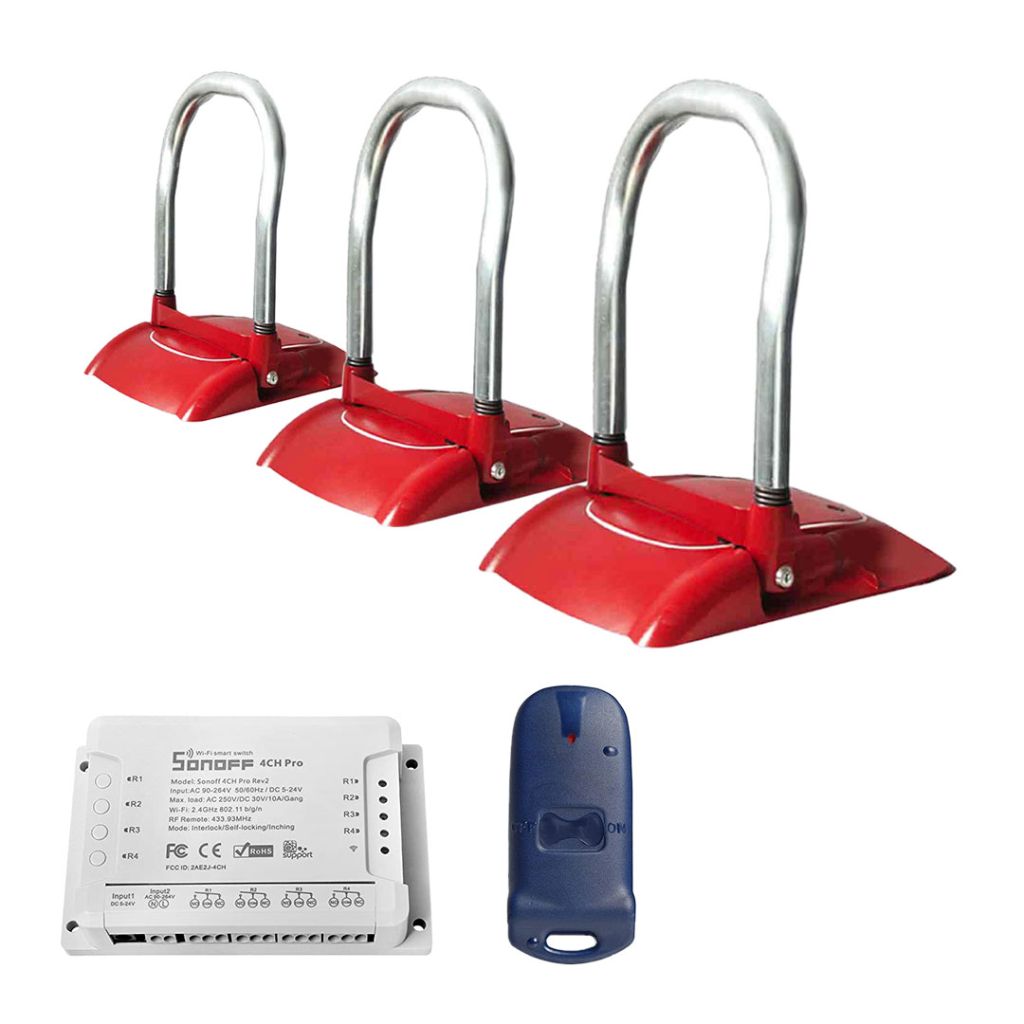 Set 3 blocatoare automate pentru parcare Ducati model MY PARK 2110 cu modul WI-FI este un sistem de blocare automat al locului de parcare cu telecomanda si modul wi-fi pentru control prin telefon.