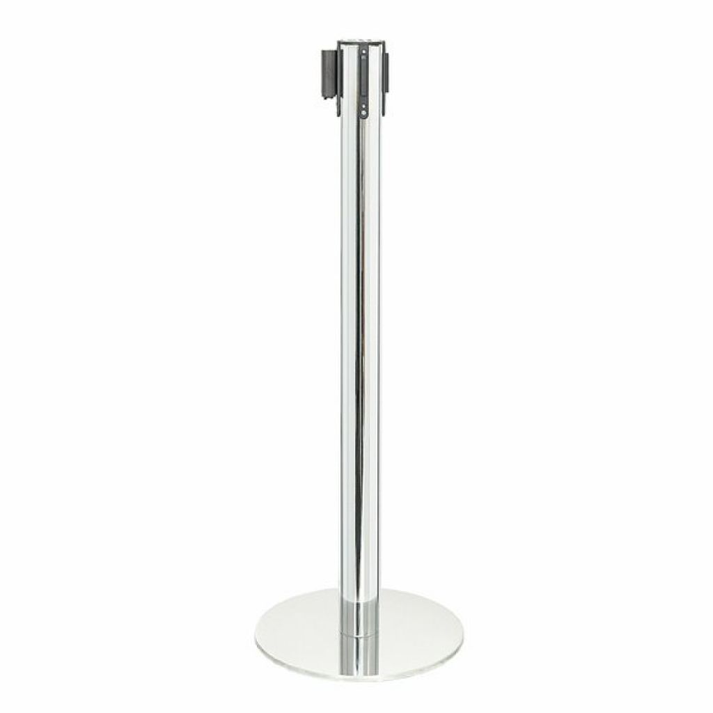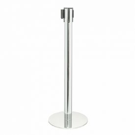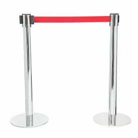 Stalp de ghidare si delimitare, cromat, cu banda retractabila, rosie, 3 metri