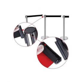 Acesti stâlpi cu banda retractabila sunt robusti, cu o bază cu greutate. Banda retractabil lungimea maxima de 300 cm, și este făcută din nailon într-o țesătură încrucișată. Fiecare stalp are o banda retractabilă. Cuplați cel putin 2 stâlpi.