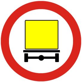 Accesul interzis autovehiculelor cu remorca, cu exceptia celor cu semiremorca sau cu remorca cu o osie, C8, indicator de interzicere, Protrafic, 600 mm, folie reflectorizanta clasa 1, otel vopsit