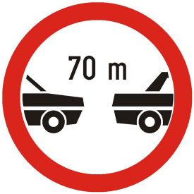 Interzis autovehiculelor de a circula fara a mentine intre ele un interval de cel putin ... m, C21, indicator de interzicere, Protrafic, 600 mm, folie reflectorizanta clasa 1, otel vopsit