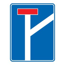 Terminarea benzii de circulatie din dreapta partii carosabile F23, indicator de orientare