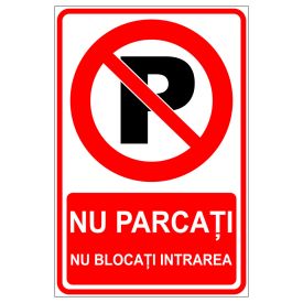 Placuta indicatoare parcare, nu parcati, nu blocati intrarea, 300x400 mm, autocolant vinyl, 0.07 mm