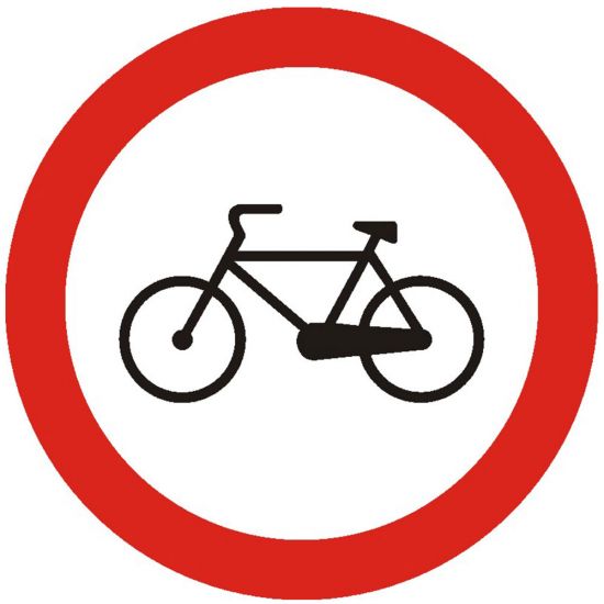 Accesul interzis bicicletelor, C5, indicator de interzicere, Protrafic, 600 mm, folie reflectorizanta clasa 1, otel vopsit, indicator de interzicere sau restrictie se intalneste la intrarea pe drumurile publice pe care accesul bicicletelor este interzis.