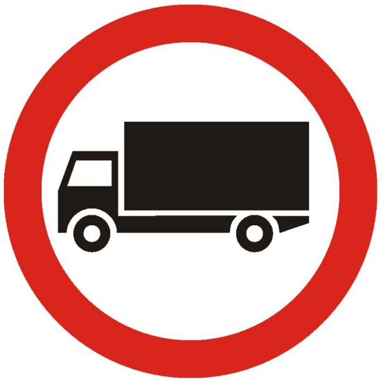 Accesul interzis vehiculelor destinate transportului de marfuri, C7, indicator de interzicere, Protrafic, 600 mm, folie reflectorizanta clasa 1, otel vopsit, indicator de interzicere sau restrictie se instaleaza la inceputul drumurilor publice pe care accesul vehiculelor destinate transportului de marfuri este interzis. Acest indicator poate fi insotit si de un panou aditional pe care este inscrisa masa maxima autorizata. Vehiculele destinate transportului de marfuri care nu depasesc aceasta masa au voie sa circule pe sectorul de drum respectiv.