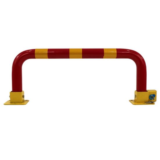 Blocator tip arcadă pentru loc de parcare, cu lacăt, construcție din oțel și plastic