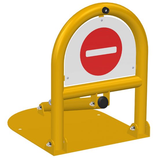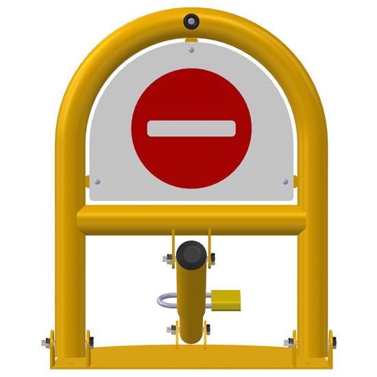 Blocator pentru parcare, tip arc, Arcada, model BPA-01, 350x450 mm, piston, galben, lacat, dibluri, holsuruburi va ofera siguranta unui loc de parcare liber, fiind foarte usor de utilizat, avand un sistem de inchidere cu lacat.