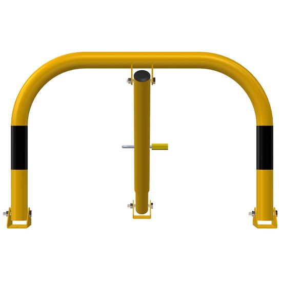 Blocator pentru parcare, tip arc, Poarta Maxi, model BPP-03, Urbas, 800x400 mm, piston, galben, lacat, dibluri, holsuruburi