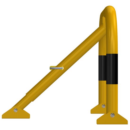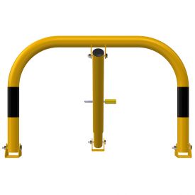 Blocator pentru parcare, tip arc, Poarta Midi, model BPP-02, Urbas, 600x400 mm, piston, galben, lacat, dibluri, holsuruburi este un sistem folosit pentru blocarea accesului pe locurilor de parcare.