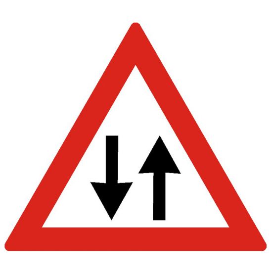 Circulatie in ambele sensuri A31, indicator de avertizare este întâlnit la ieşirea de pe un drum public cu sens unic. Are rolul de a atenţiona Conducătorul auto că pe sectorul de drum următor se va circula în ambele sensuri.