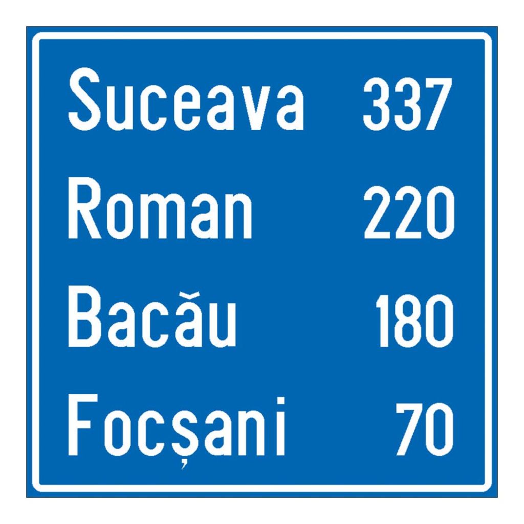 Confirmarea directiei de mers spre localitati mai importante si distantele pana la acestea F48, indicator de orientare.