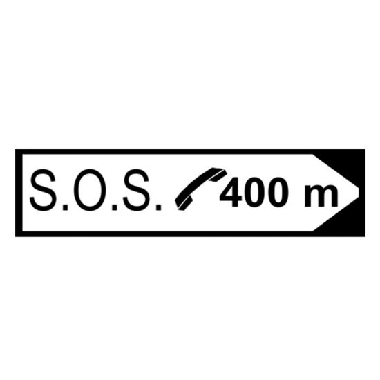 Indicatorul rutier din imaginea alăturată, informează conducătorii de vehicule cu privire la direcția și distanța până la telefonul pentru apel de urgență.