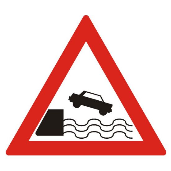Iesire spre un chei sau un mal abrupt, A16, indicator de avertizare, Protrafic, 700 mm, folie reflectorizanta clasa 1, otel vopsit se amplasează la 100-200 m de chei sau mal abrupt pentru a atenţiona Conducătorul auto că, pe direcţia înainte, drumul se termină deasupra cheiului sau malului abrupt.