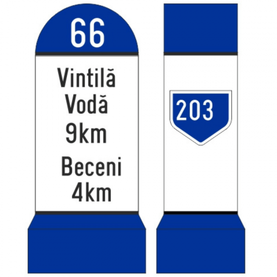 Indicator borna kilometrica pentru drumuri comunale, K4, folie Clasa 1, sistem de fixare inclus